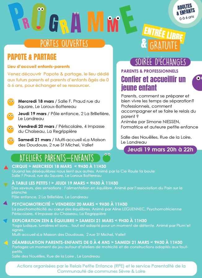 Un programme riche organisé par le service Parentalité du 18 au 21 mars 2026