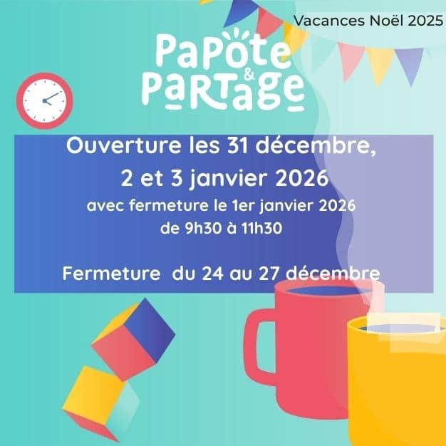 Pendant les petites vacances scolaires le LAEP Papote & Partage est ouvert la 2e semaine des vacances scolaires sur tous les sites. Lire la suite